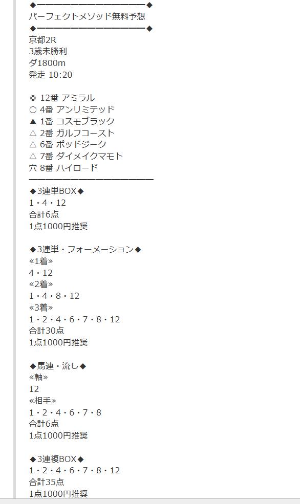 有料情報ではありましたがハンパじゃない結果を届けてくれて2年連続競馬収支大幅プラスを手に入れる為にガンガン使っていきます!
