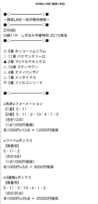 ここ毎日無料予想届けてくれるし的中率もかなり高い