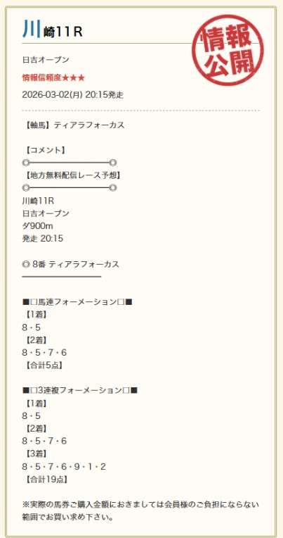 万馬券ホースさんは毎度無料予想でお世話になっているので