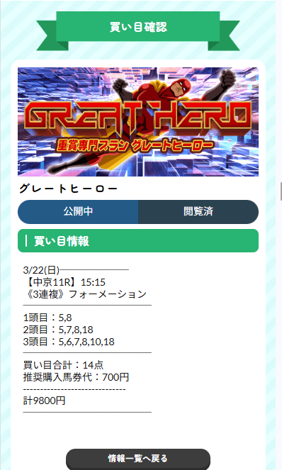 グレートヒーロー情報で三連複的中