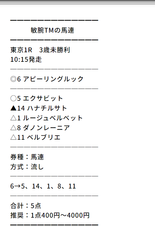 トリガミ濃厚の買い目に