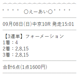 けどこの点数で4-8-15の馬券当たって17馬券いただけました(;´∀`)