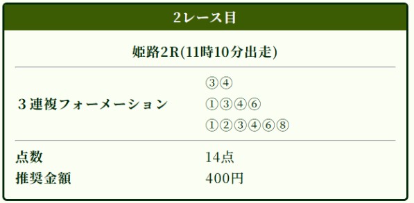 人気上位組での決着でしたが払戻しが32.4倍と美味しかった!