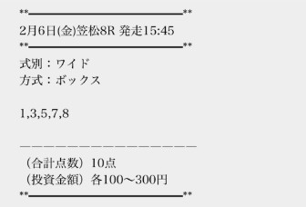 3日(火)の地方競馬無料予想の馬券を買い目通りに購入