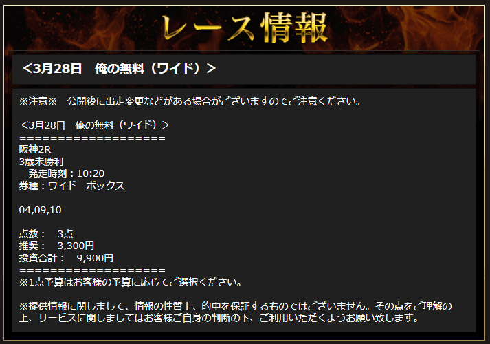 安定と安心を無料予想で届けてくれる!しかも最近馬帝国管理人が自腹検証をし